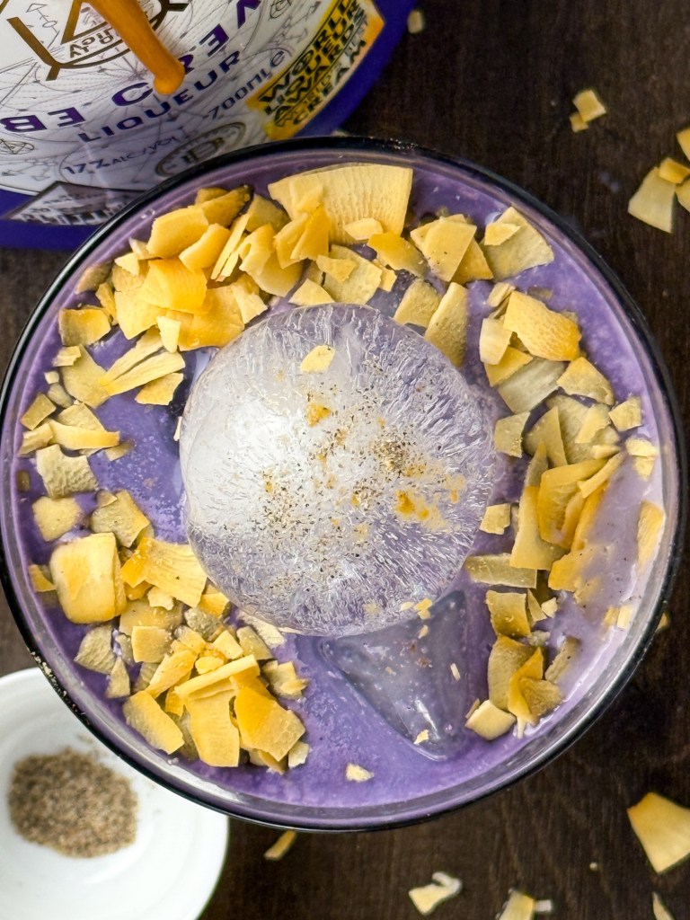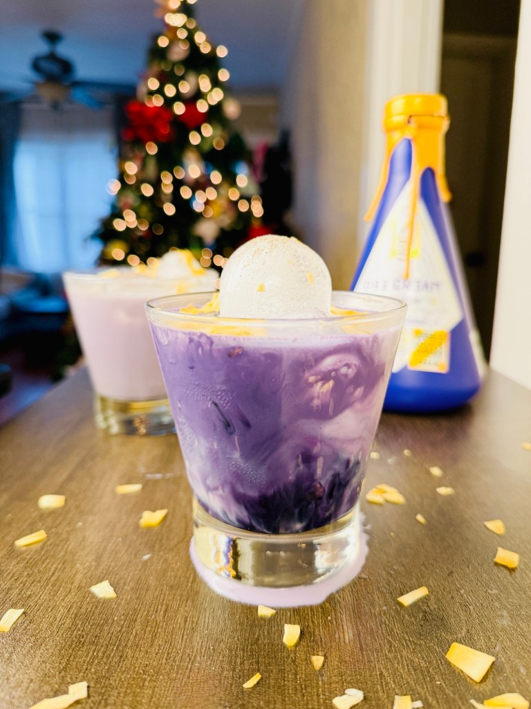 Going back to the eggnog: you ask me, “why on earth did I even plan on making something I don’t even care for?” The answer is: I’m not sure. Maybe I’m getting nostalgic for the flan and ube combination? Maybe it’s age that makes it sound more appealing? I’m not sure. But in the process of developing this recipe, I had a clear goal in mind: curiosity. “What if…?” And that “what if” question has led me to a tropical twist on eggnog (which we surprisingly approve of). Now, adding the ube liqueur and the rum, it’s like noche buena in your mouth.