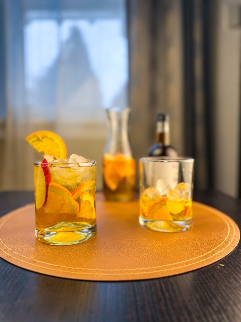 This fun take on a traditional wine cocktail is smooth, refreshing and fruity! It doesn’t pack a punch as strong as its original counterparts, but that can be easily adjusted by adding more of the alcoholic components. You can even make it less sweeter by swapping the sparkling apple cider with club soda. If you know me, I like using fruits in season, hence the use of sliced apples and oranges. If you ever find yourself making this around the fall season and plums are in season in addition to apples, using both will add such depth to the flavor and color of your sangria.