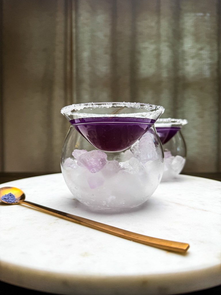 - Garnish ideas: Edible flowers, lemon peel twists, or a purple sugar rim for added flair.