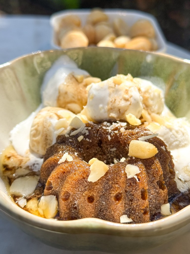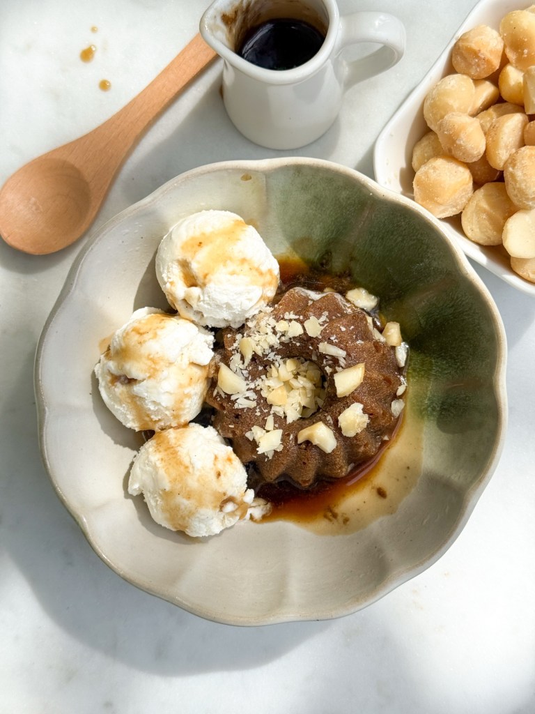 - Serve with vanilla ice cream, crushed macadamia nuts, and extra glaze if desired.